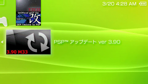PSPを起動し、ゲーム→メモリースティックよりPSP アップデート ver3.90を起動する。